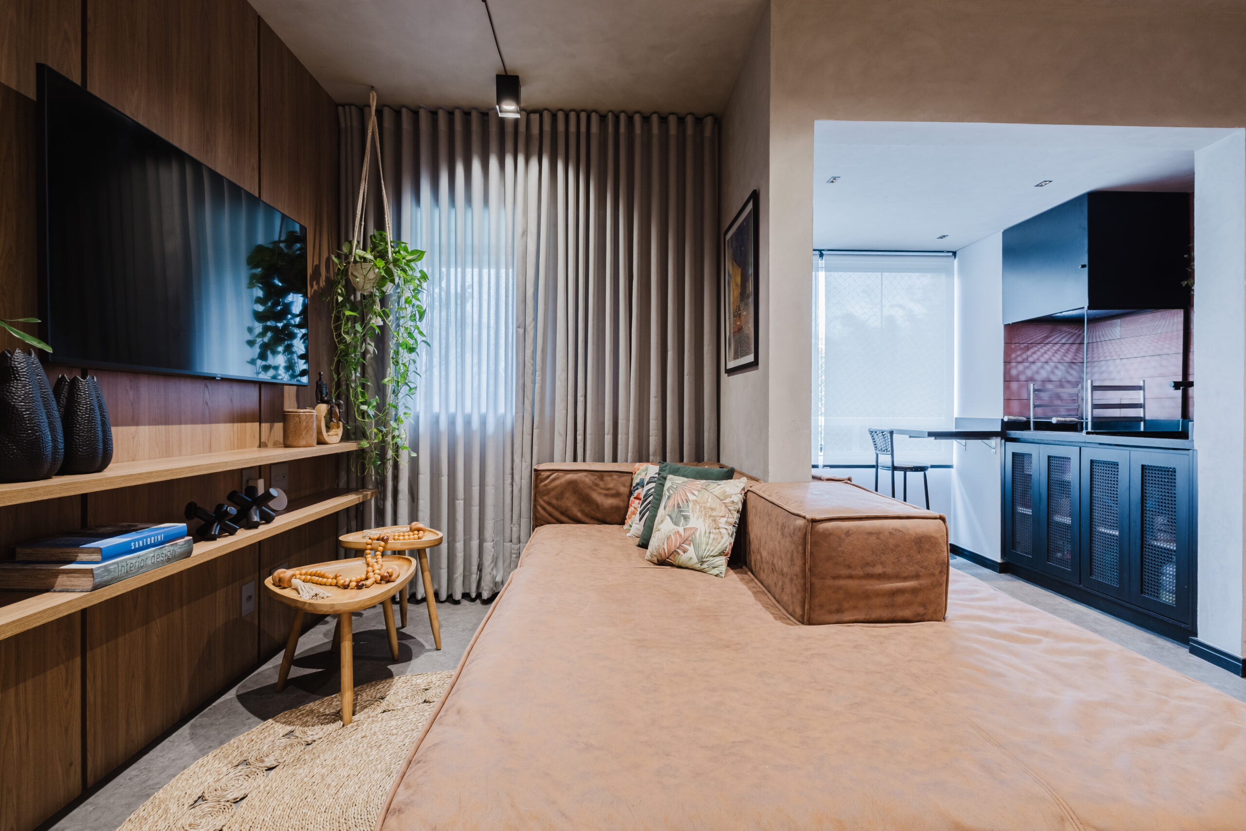 Cada ambiente foi desenhado para equilibrar funcionalidade, conforto e estética, provando que um apartamento compacto pode ser sofisticado, acolhedor e cheio de personalidade.